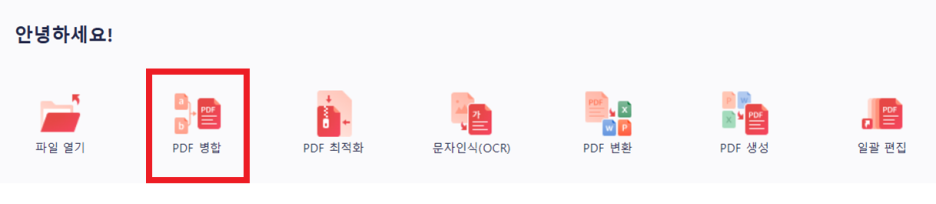 - 설치 후 메인 화면에서 [PDF 병합] 기능 사용