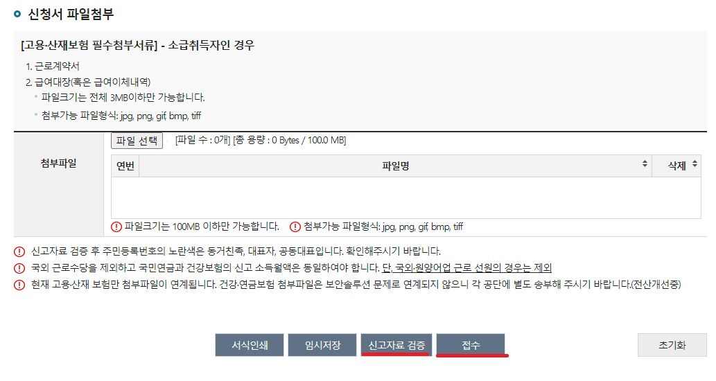 - 대표자 직계 가족의 경우 고용산재는 가입대상이 아니므로 연금과 건강만 체크하여 신청하여야 함.